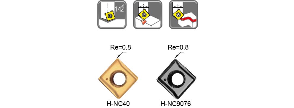 - H-NC40 :• 泛用材種,適合鋼鐵,鑄鐵 • 刀片有2個切削刃口