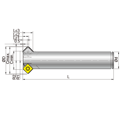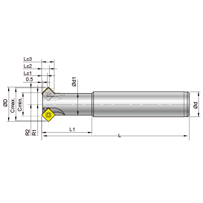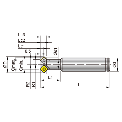 | 圖示 | Order No. | Part No. | Cmin ø | Cmax ø | ød | ød1 | øD | R1 | R2 | L | L1 | Lc1 | Lc2 | Lc3 | 刀片 螺絲/板手 | |