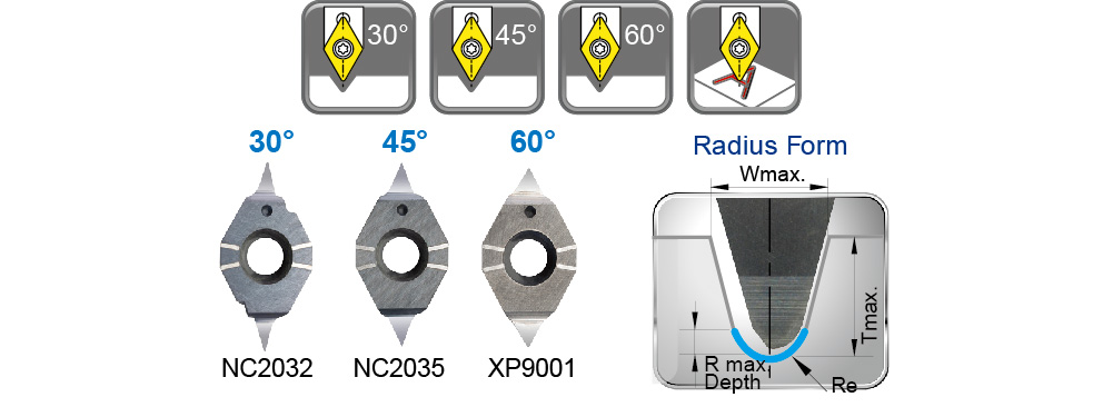 | 30° | X060A30R020 | NC2032 | TiAlN | K20F | 6 | 2.05 | 0.2 | 0.15 | 0.84 | 1.0 | |
